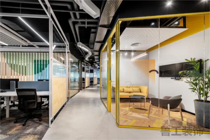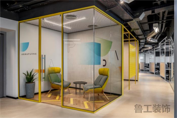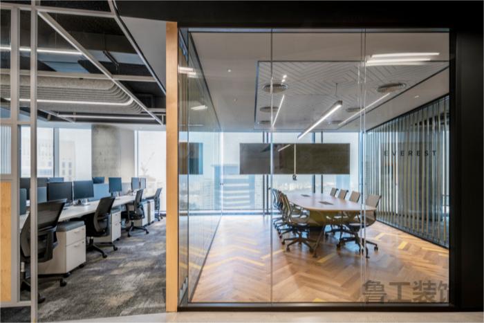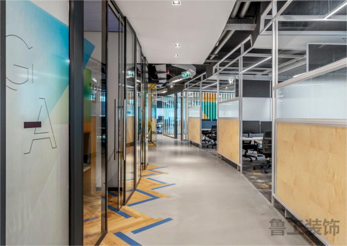 超过15个房间被设计用来支持这个空间,包括会议室、头脑风暴室、独立办公的空间以及一对一会议的房间。这些空间需要完美的声学效果,为了实现这一点,设计团队根据房间的需要选择了专为该项目设计的天花板地板隔断系统:单层玻璃隔断和双层玻璃隔断。#办公空间星空注册_星空(中国)设计案例